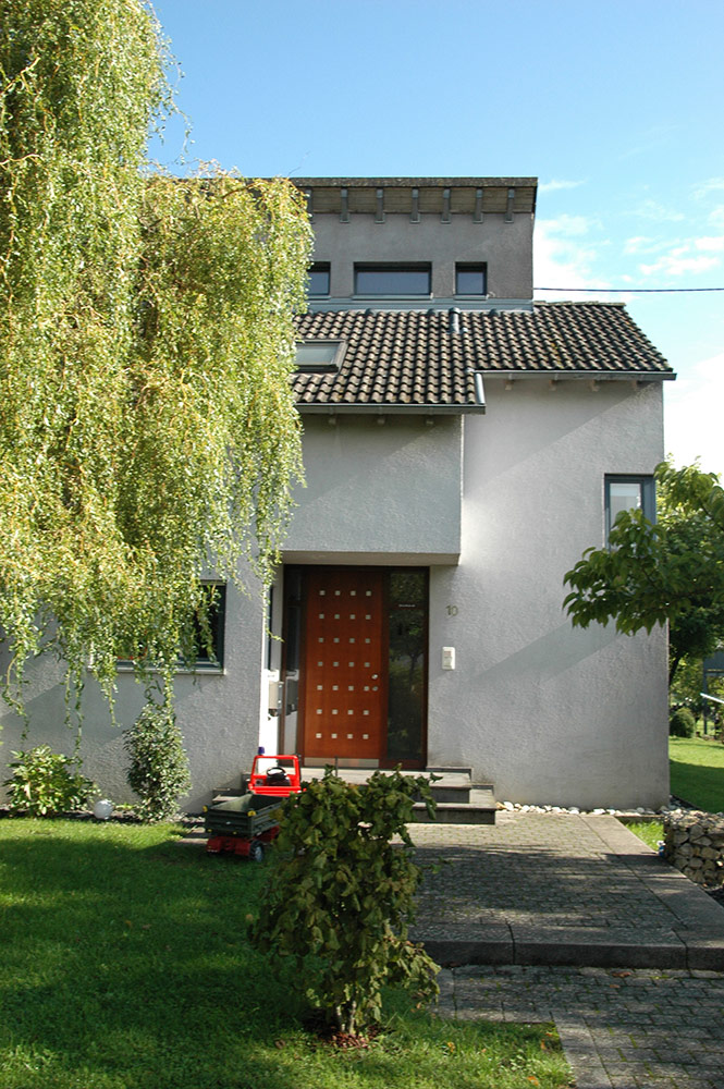 ein 155qm Einfamilienhaus in der Steinhausbauweise und einem versetzten Pultdach, gebaut in Trierweiler.